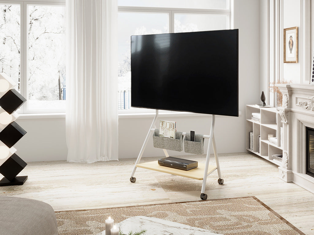 14 levels of adjustable height via the VESA rail from 1100 mm to 1300 mm, this TV stand can perfectly adapt to different TV sizes and sofa heights.