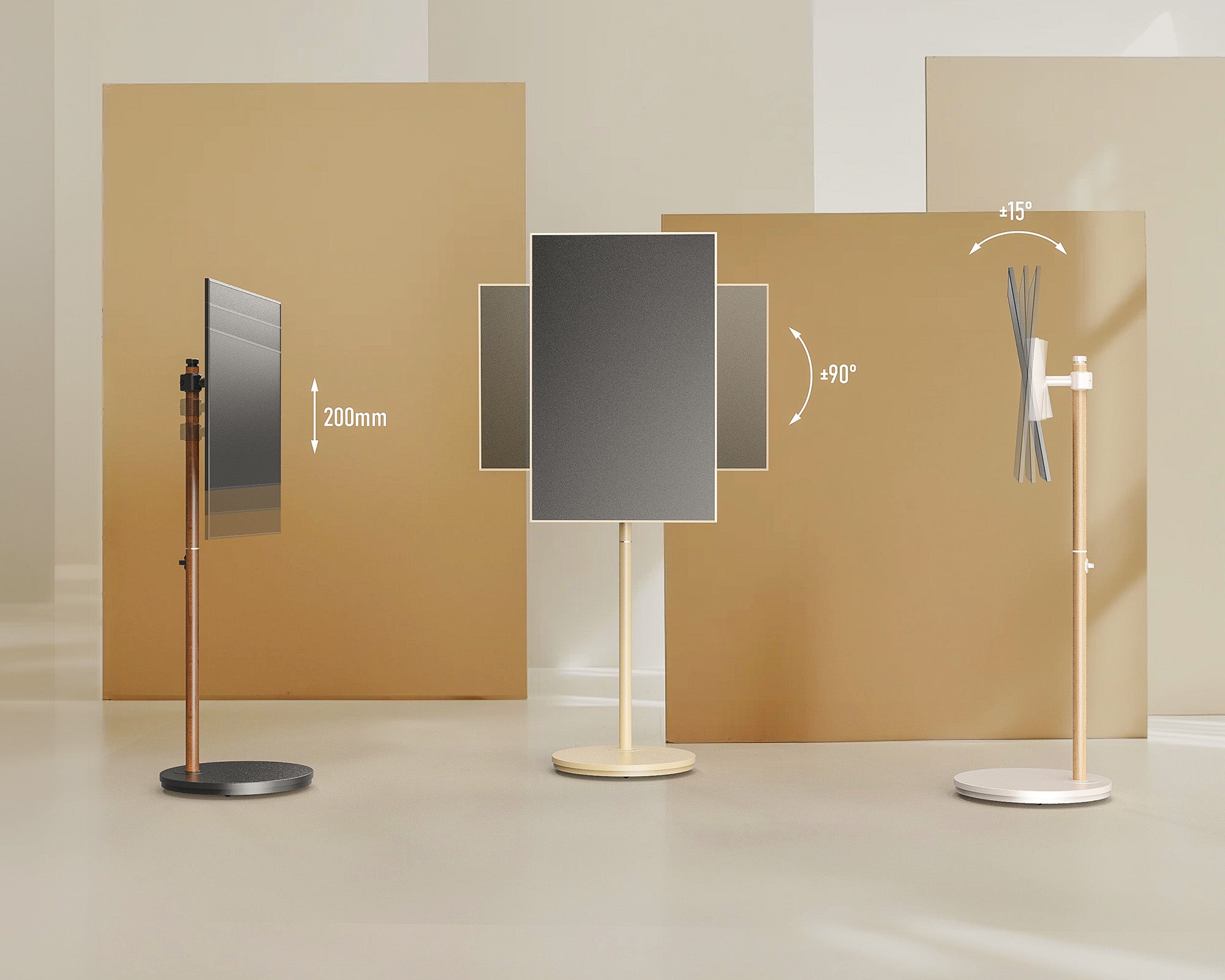 The Master Series V2 Pro TV stand for 24-48 inches is swivelable by 90°. If your TV has a gravity system, you can achieve a vertical viewing angle. Additionally, this product is infinitely adjustable by 200 mm, with a tilt of ± 15°. This TV stand eliminates conventional viewing restrictions and meets your needs in a variety of situations.
