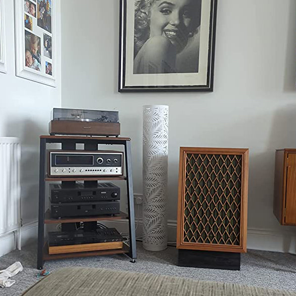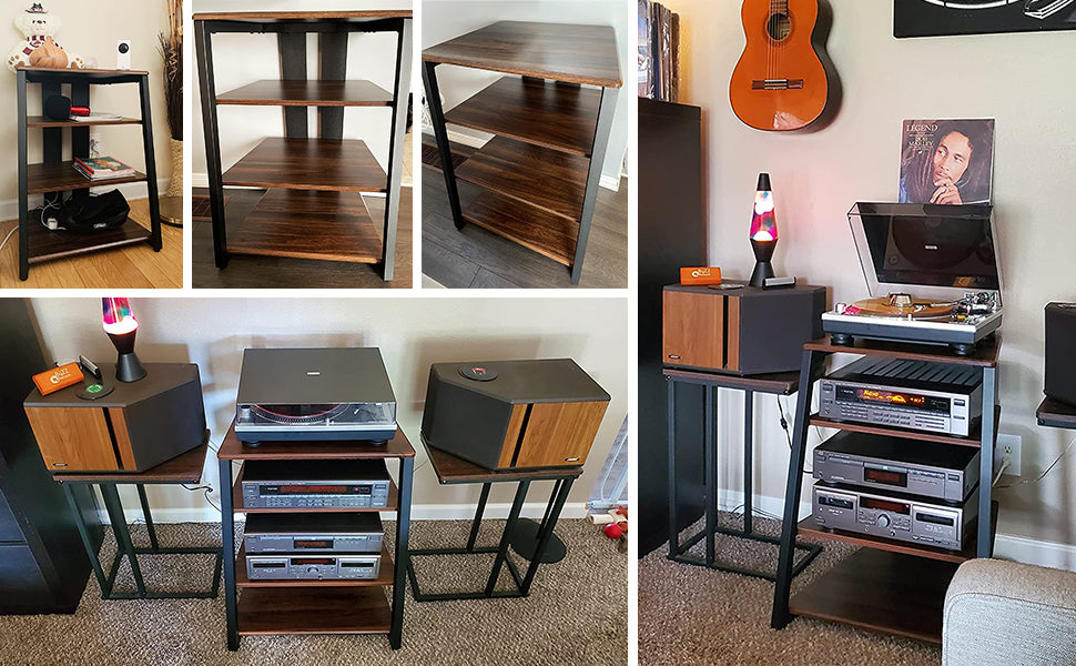 A diferencia del soporte HIFI general, este soporte está hecho de una estructura de acero y madera de alta calidad y es muy, muy robusto y estable. Cada estante de madera tiene una buena estabilidad térmica y puede soportar una diferencia de temperatura tres veces mayor que la del vidrio común. La capacidad de carga de los estantes de arriba hacia abajo es de 50kg/20kg/20kg/50kg.