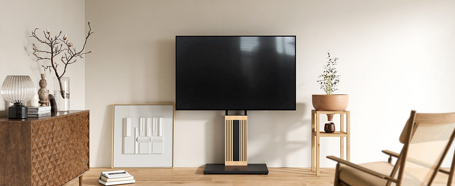 Grâce à sa conception réglable en hauteur (800–1000 mm), le support TV s’adapte avec flexibilité à différentes positions assises – idéal pour les tables basses, les tatamis ou les canapés bas.