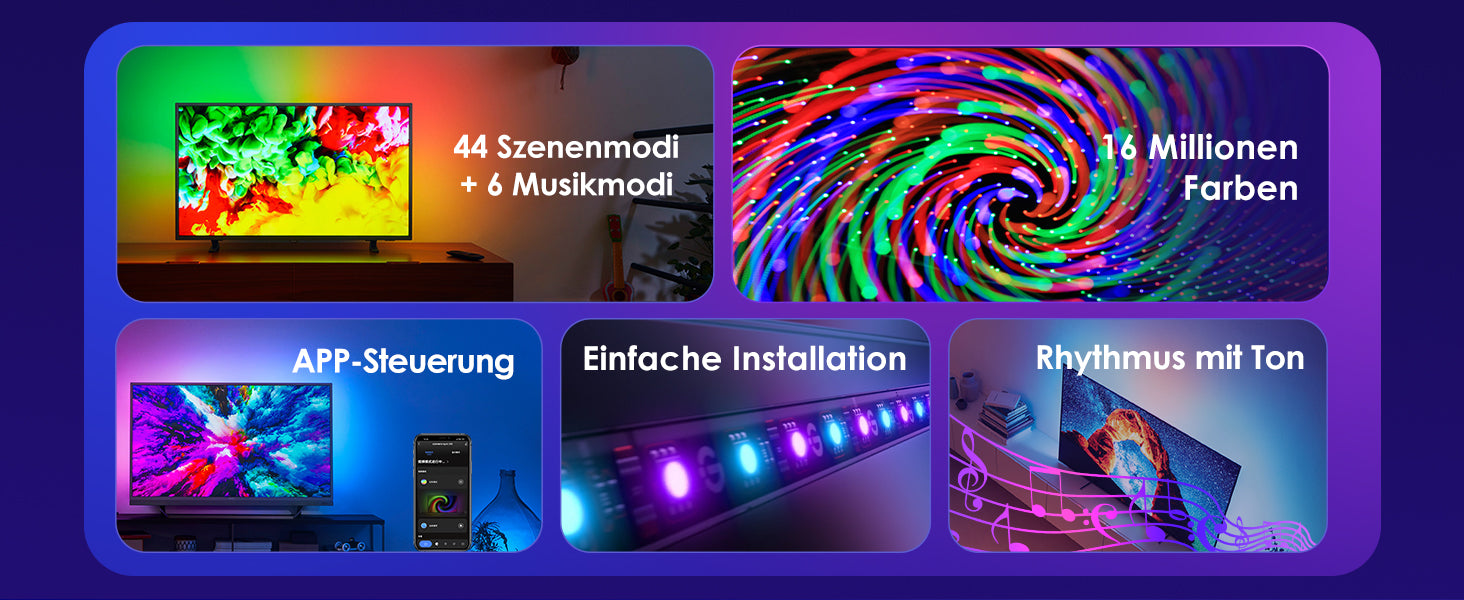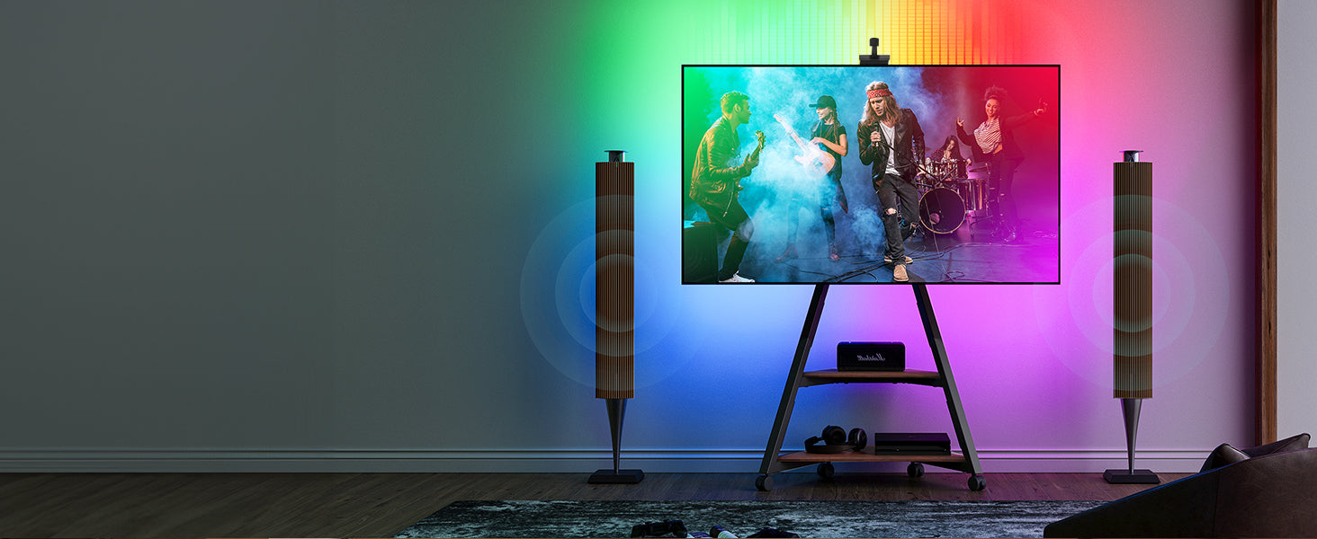 2. Tegelijkertijd vermindert de achtergrondverlichting het kleurcontrast tussen de tv en de muur. Dit beschermt uw ogen beter tegen verblinding.