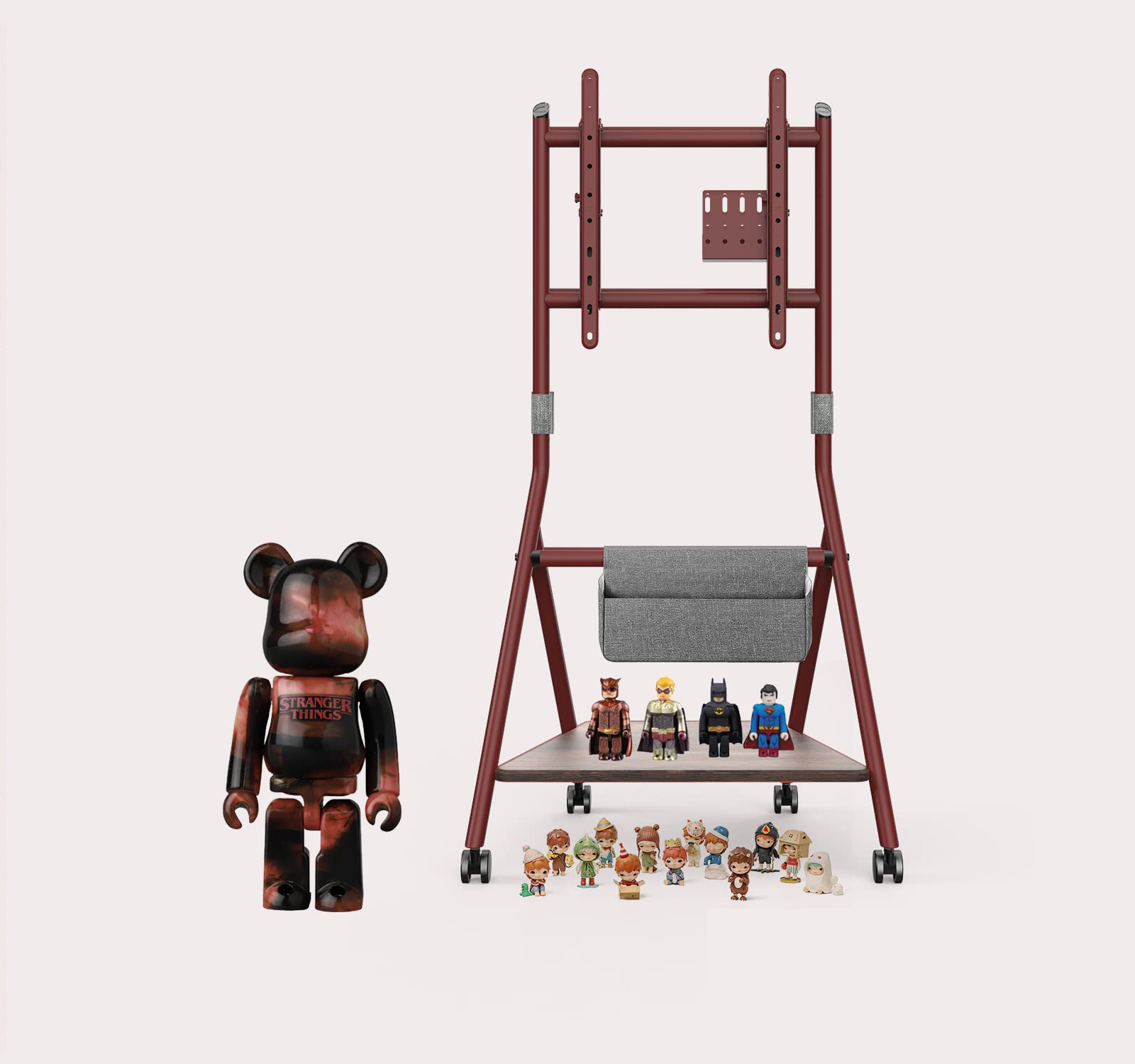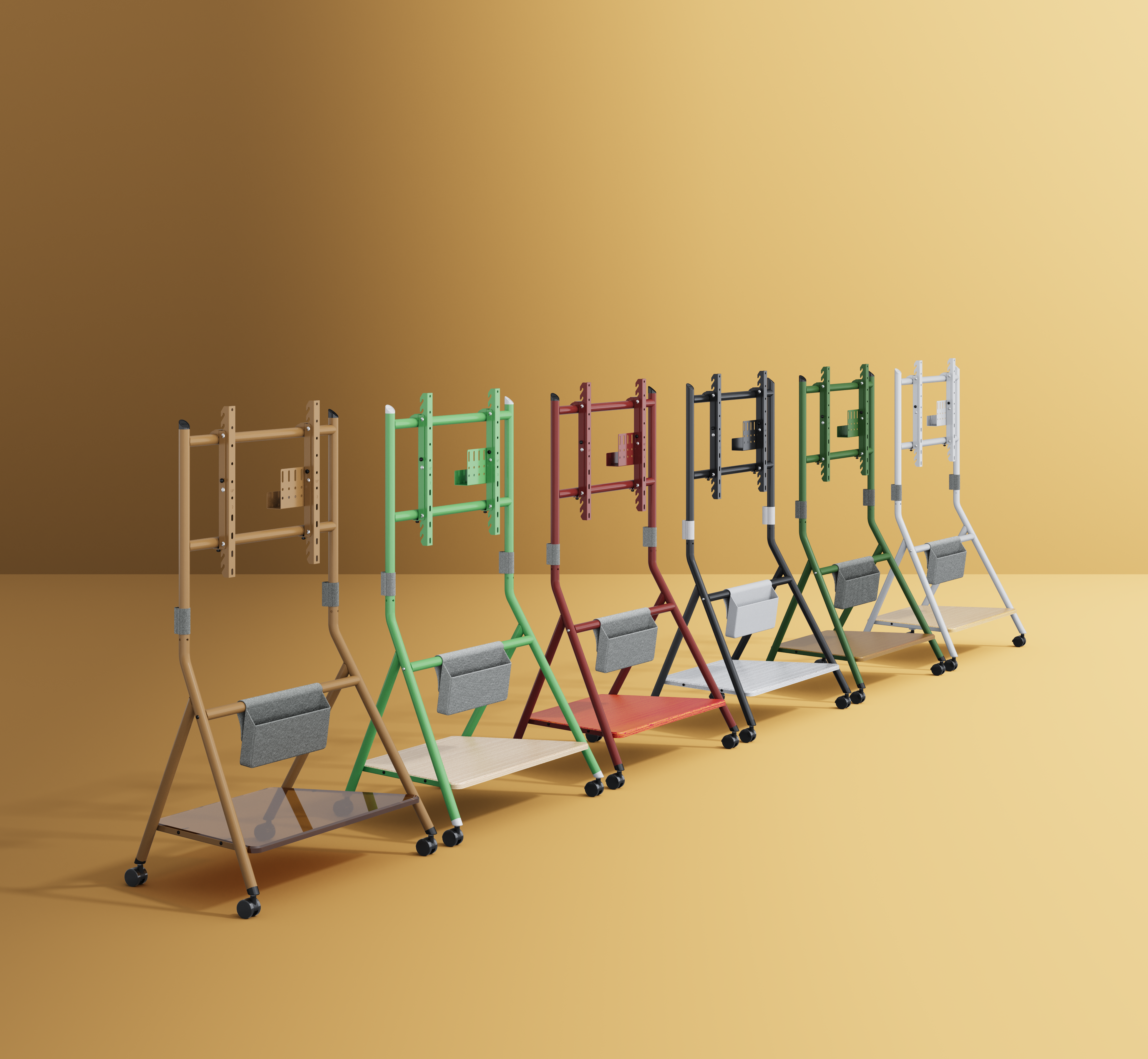 De Collector-serie heeft 4 hoogwaardige universele zwenkwielen om ze te kunnen duwen zoals u wilt. Alle 4 de wielen zijn ook uitgerust met remmen, zodat je de tv-standaard naar behoefte op verschillende plaatsen kunt bevestigen.
