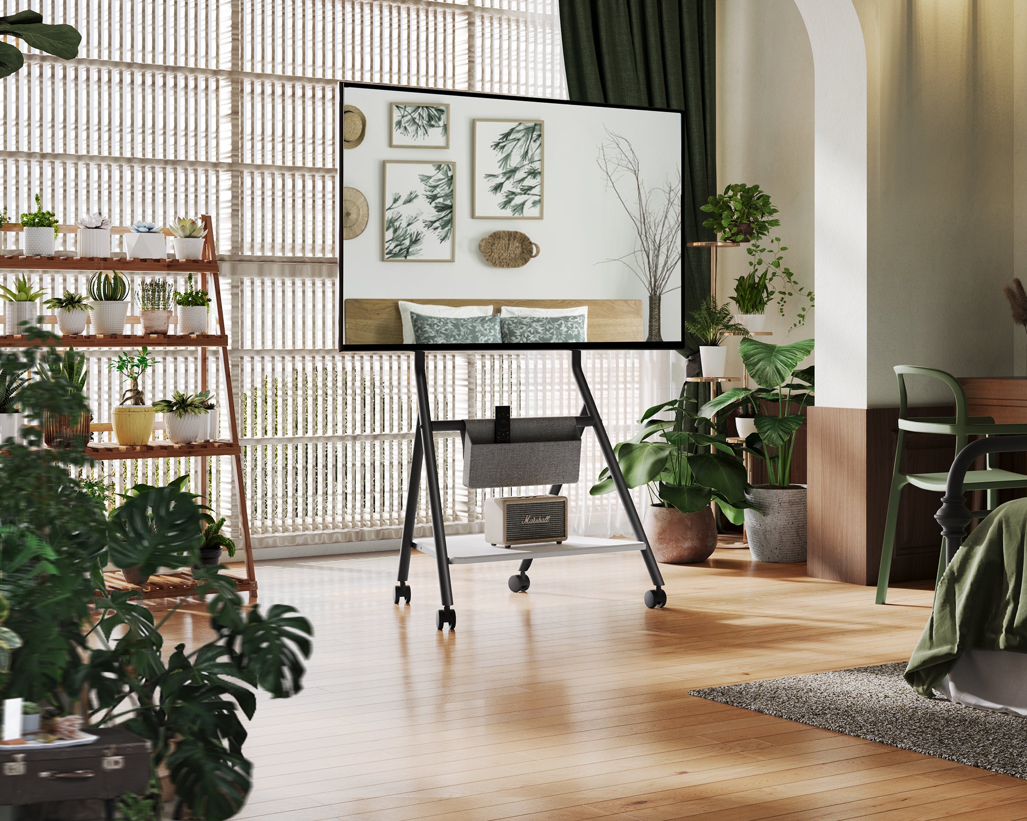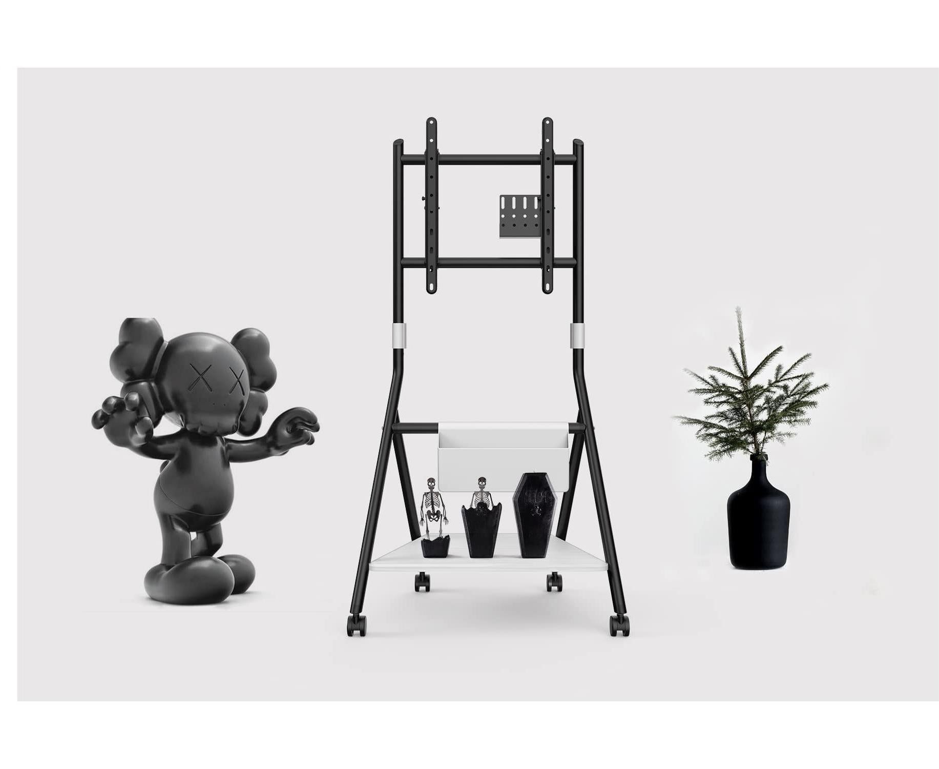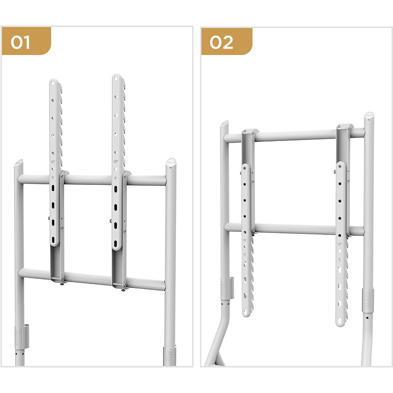 14 niveaus in hoogte verstelbaar door de vesa-rail van 1100 mm tot 1300 mm, deze tv-trolley kan zich perfect aanpassen aan verschillende tv-formaten en bankhoogtes.